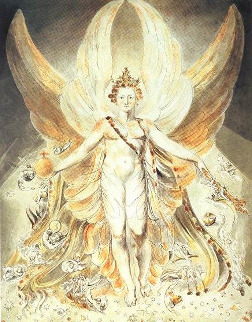 「幻視者」という異名を持ち、ブレイクは次々と神秘的、霊的な作品を作っていきます。初期は神秘思想家エマヌエル・スウェーデンボリの影響を受け、「ミルトン」「エルサレム」など独自の象徴的な神話を構築していきました。詩人としても活躍し、「無心と経験の歌」「天国と地獄の結婚」等の神秘的で深層的な詩を生み出しました。