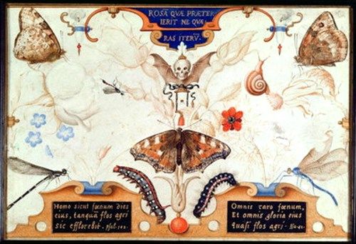 人生の短さの寓意と題されたこの作品は、髑髏を筆頭に儚げな