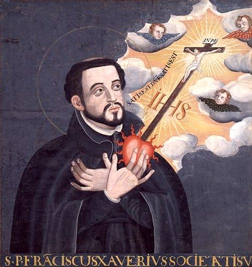 ザビエルが手に持っているのは炎の心臓で、信仰心と布教の情熱を