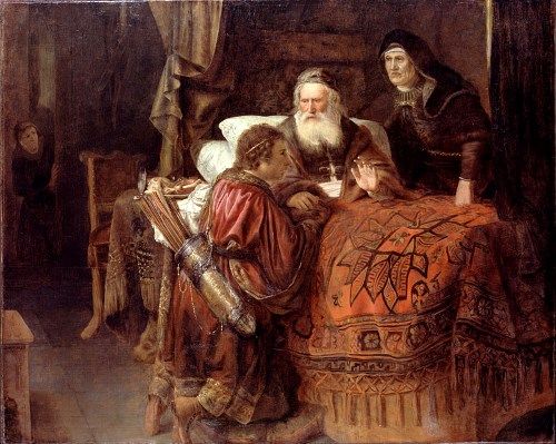 父イサクは高齢で目が見えなくなっていた為、手の毛深さでエサウを判断していました。エサウはかなり毛深かったのです。それを知っていた母リベカとヤコブは、毛の付いた手袋をつけるという一計を案じました。それに騙されたイサクはエサウに祝福しているつもりで、ヤコブに長子権を与えてしまいました。後にそれを知ったエサウは、怒り狂って弟を殺そうと考えます。リベカはそれに気づいてヤコブを叔父の家へ逃亡させるのでした。