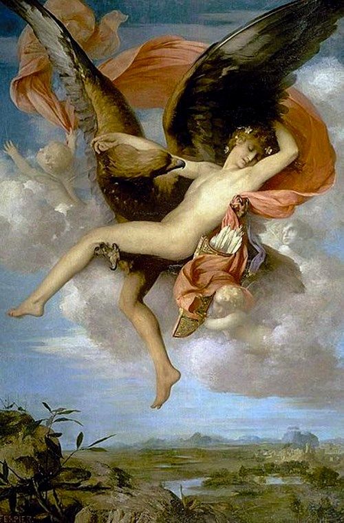 また、ガニュメデスはヒュアキントスやアドニス、エンデュミオン、ナルキッソスと同様に美少年の代表として扱われ、多くの画家に描かれています。中にはゼウスとの禁断の愛を描いたものも・・・。