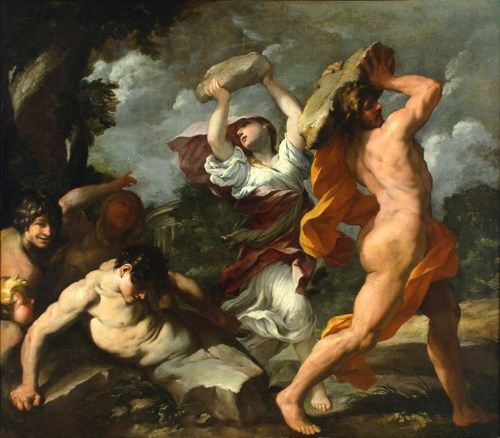 ピュラーはそんな親不孝はできないと嘆き悲しみましたが、デウカリオンは母は「大地」のことで骨は「河岸の石」の事だと解釈し、二人は石を拾って背後に投げました。すると、デウカリオンが投げた石から男性が誕生し、ピュラーが投げた石からは女性が誕生しました。こうして地上にはまた人間があふれるようになったのです。