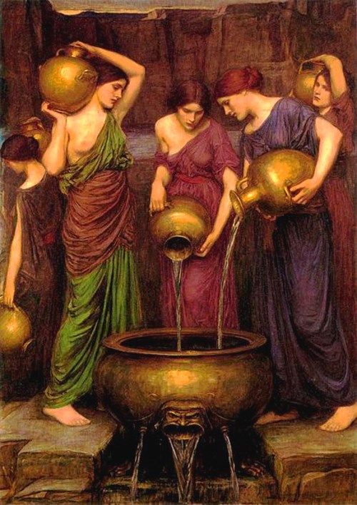 この絵画は神話バージョンで水汲みの罰を受ける娘達を描いております。
