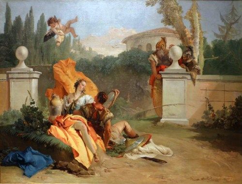 魔女アルミーダはリナルドを殺した者と結婚すると宣言しますが、彼を破る者は誰もいませんでした。しかし、タンクレーディが宿敵との決闘で大きな傷を負ってしまいます。キリスト教に改宗していたエルミニアは自らの髪を切って傷口を縛り、それを癒しました。破れ絶望するアルミーダは自ら命を絶とうとするものの、リナルドはそれを止めてキリスト教に改宗するよう懇願します。アルミーダもそれを受け入れたのでした。