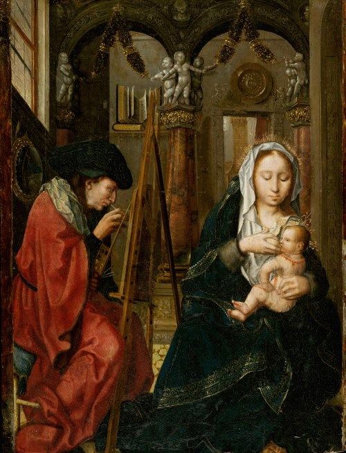 こちらの聖ルカは幻視でもこもこっと現れた聖母子を描こうと