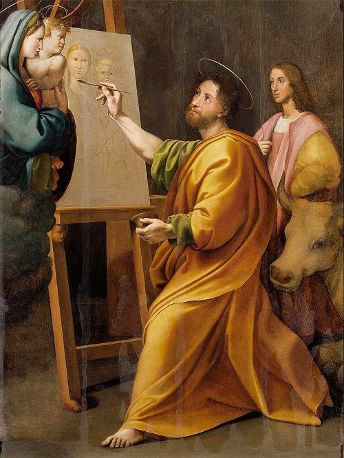 それを私達に見せている聖ルカを描いています。