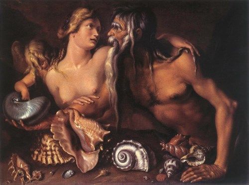 ポセイドンとアムピトリテのツーショット。結ばれた二人をクピドや