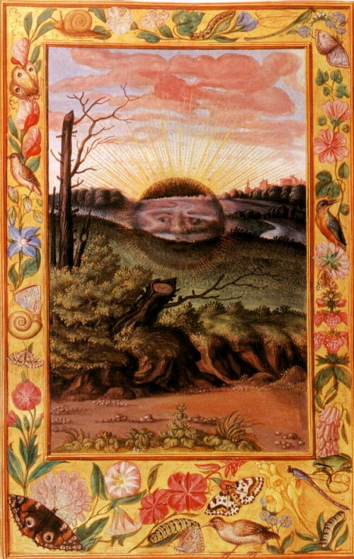 何やらWikiによると「太陽の輝き」の挿絵に、有名画家であるアルブレヒト・デューラー、ハンス・ホルバイン、ルーカス・クラナッハ(父)の三名が関わっているとのこと。私の検索不足でどのように、どの部分で関わったのかは分かりませんでしたが、挿絵部分を手掛けたのだと思います。よく見てみると、裸婦の入浴や子供の描写はクラナッハっぽいし、細密な動物や植物画はデューラーが手掛けたとしても納得できます。ホルバインは肖像画のイメージが強く、どこを描いたのかはわけ分かりませんが・・・。
