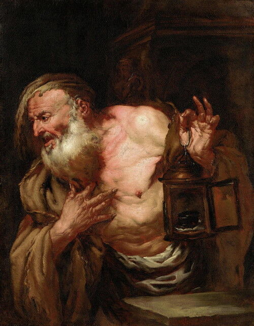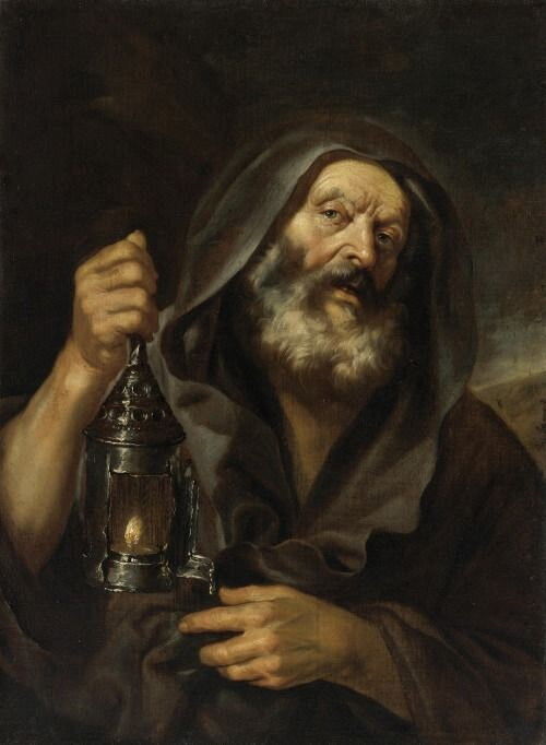 ディオゲネスの逸話の一つ。彼が日中にランプを灯して歩き